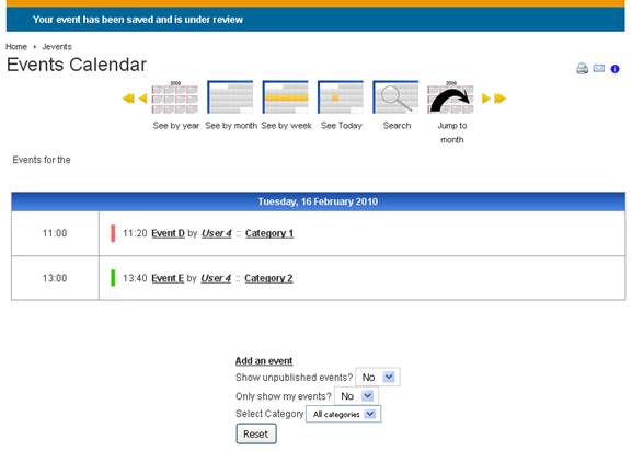 • You will return to the “see by month” mode of the “Events Calendar” screen, with a message at the top saying “new published state saved”.